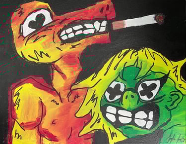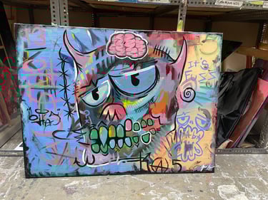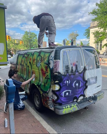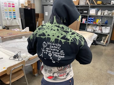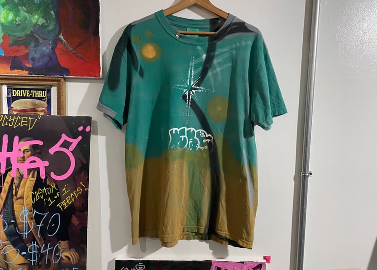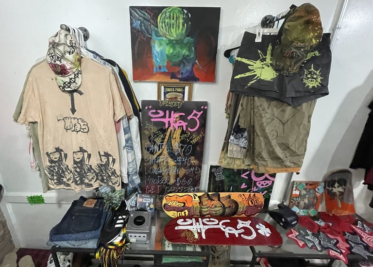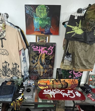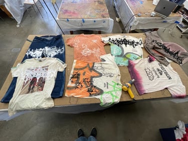 Starting in June 2024, I began collaborating with the local art collective "Vacancy" to sell my inventory at an in-person location. Having my own booth alongside other brands like drivethru734 greatly improved my sales and commissions. During this time, I worked in their screenprint studio and experienced screenprinting on a larger production scale rather than the 1-of-1 commission work I was used to. I found that my simple, recognizable designs, such as the logo tanks, sold the best, so I started to lean more towards that aspect of my designs.